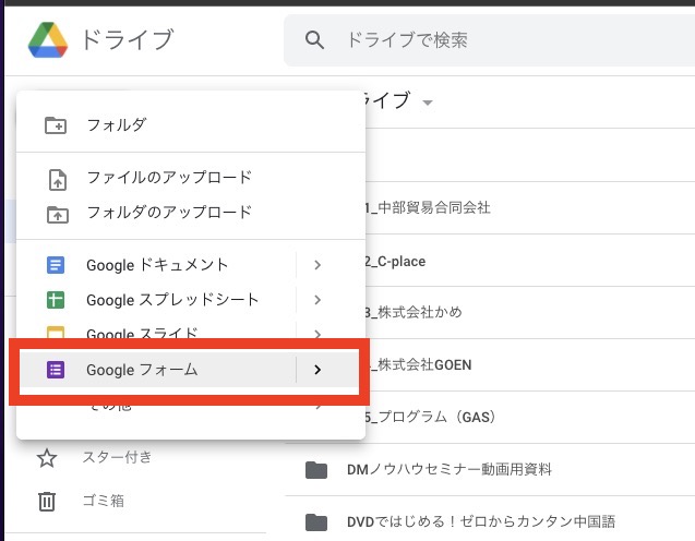 「Googleフォーム」をクリックすると新規でフォームを作成することができます。
